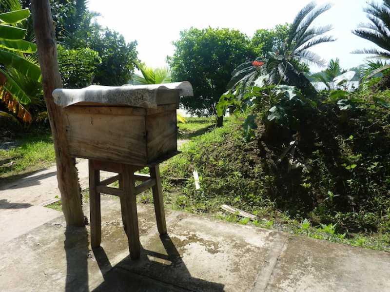 Je peux t’assurer, peu de miel, comme nous on l’entend avec nos ruches. La récolte se fait par découpage d’une partie du rayon, donc en plus du miel, il y a du pollen voir des larves. Que cela ne tienne, on presse et on fait égoutter ce malaxage. L’élevage est permanent, multiplication par essaimage sans arrêt, voir désertion des nids.