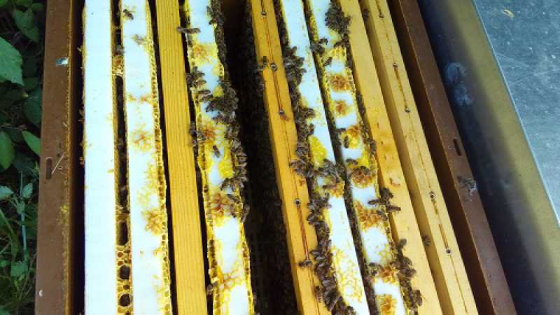 Entre 2 averses, j’ai fait un petit contrôle sur des essaims en ruchette et ils ont faim alors que je les voie bosser.
