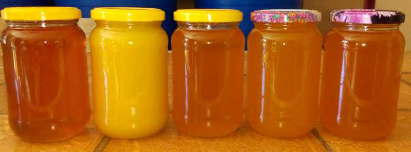 mes 4 ruchers et le miel des cires d’opercules pressé à la main