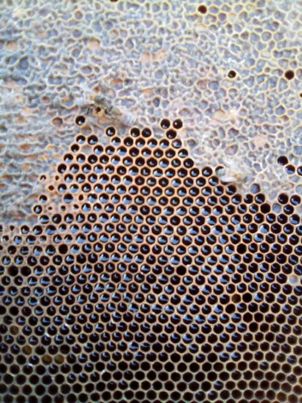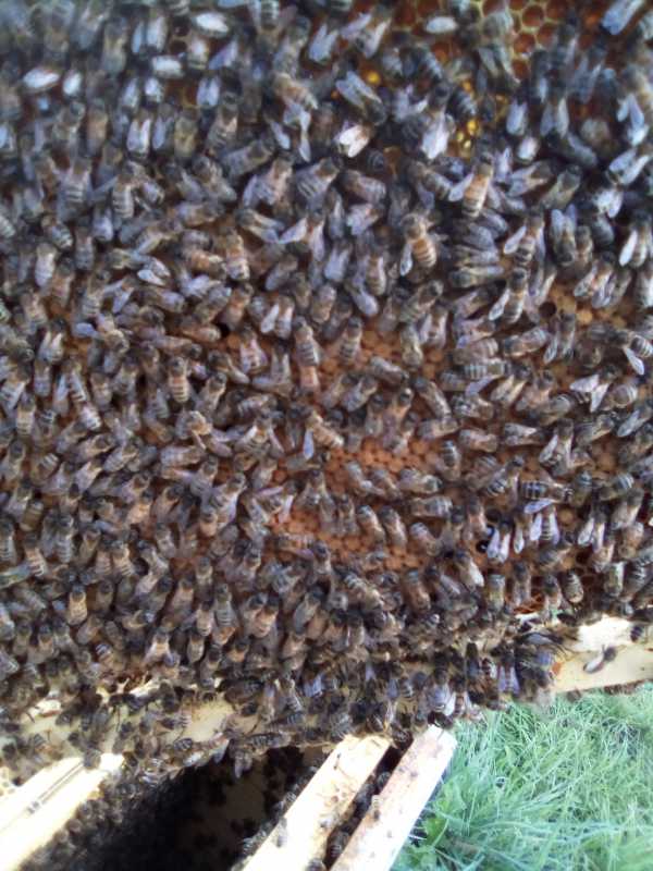 Fin de visite…sur 35 une bourdonneuse….corps bloqués,….mis 1 voir 2 gauffres . Après le petit coup de froid de la semaine prochaine pose des hausses…ça s’apparente à un miéllée violente.