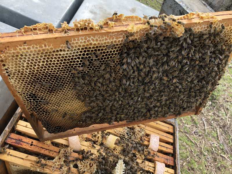 peux tu m’expliquer ?.Ça miellote par moment mais rien de bien transcendant. . Et là elles ont bouffé ce qu’elles ont stocké pour faire du couvain. Ça rentre beaucoup de pollen . Comme j’y passe régulièrement les voir, j agis en fonction de leur comportement.