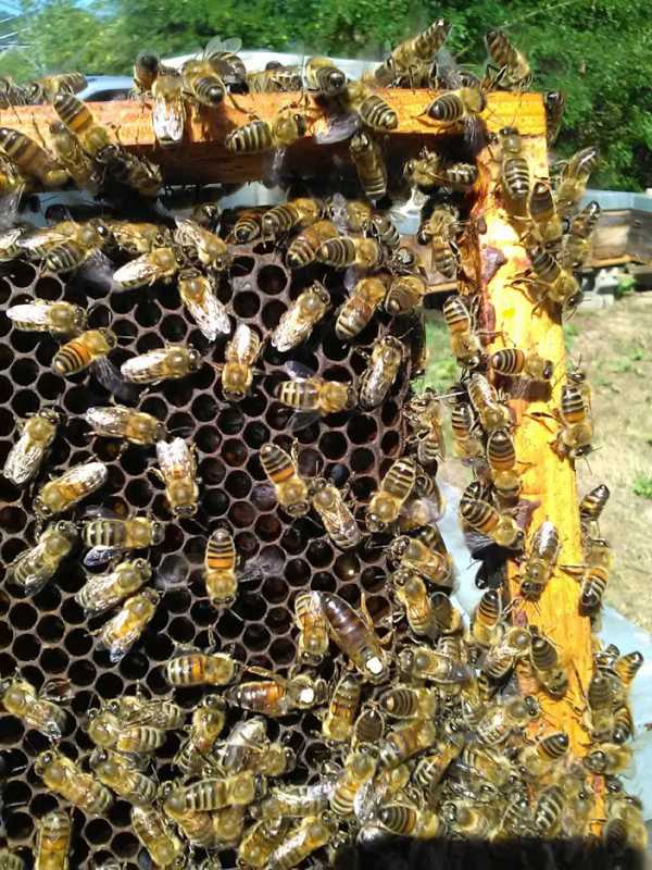 Sur une, vers le troisième cadre une boule d’abeilles sur la reine…la pauvre s’est éteinte dans le creux de ma main…..des fois elle sont connes !!! :twistedC’est du vol et ça me rend furieux