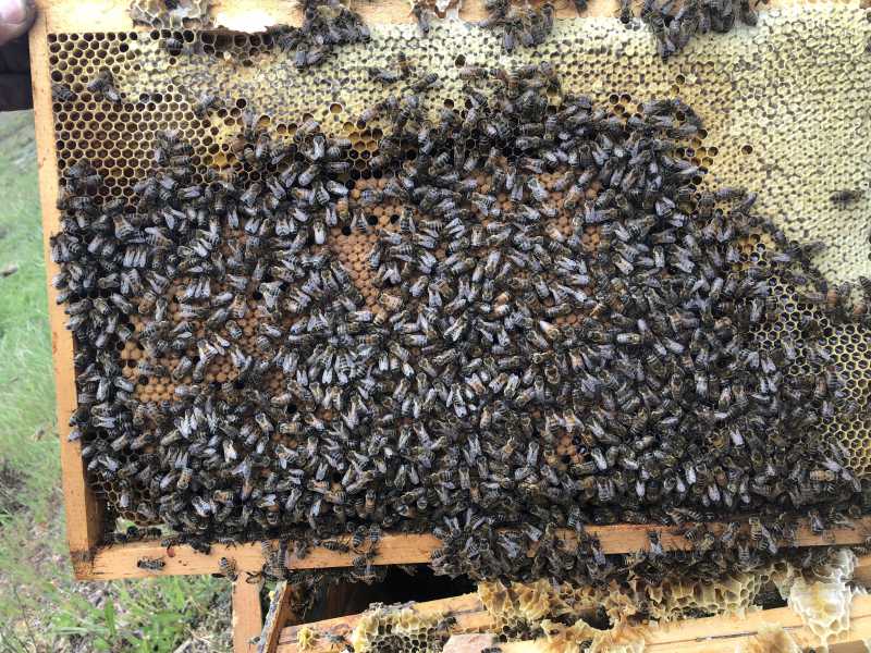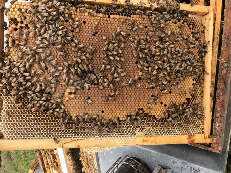 La reine ÉTAIT donc probablement vierge la dernière fois: pas de couvain et refus d’élever les larves greffées. Elle est désormais en ponte (et c’était bien compact).