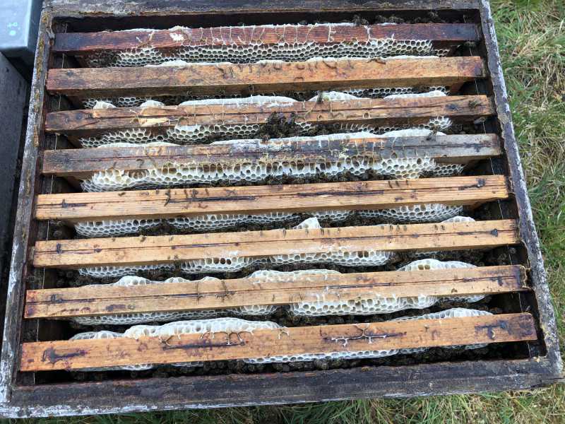J’ai fais un essaim avec 3 couvains la semaine dernière remplacé par 3 gaufrés.