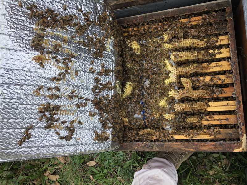 Et l’isolant pour être efficace doit être au contact de la grappe. Comme les partitions chaudes qui doivent encadrer le couvain. ça reflète la chaleur, c’est comme ça que c’est efficace.