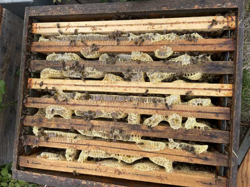 Les dernières fleursHausses toujours bien vides ici. Sur un rucher je suis limite à devoir nourrir. Quelques pointes d’acacia en fleurs, j’espère que ça permettra au moins aux colonies de rester autonomes.