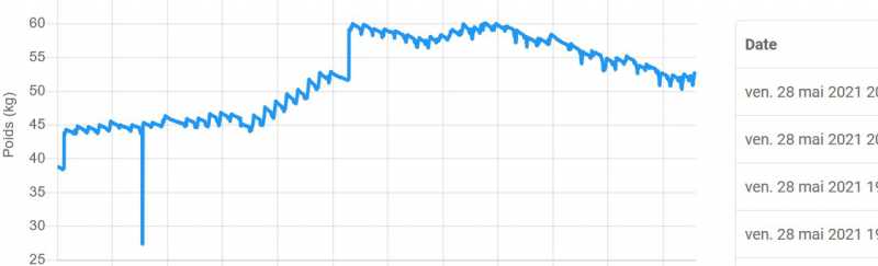 Nous venons de traverser une période de perte de poids de 200 à 300gr/jour .