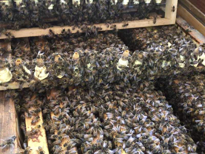 les autres j’ai rendu des cadres de miel de l’été dernier que j’avais mis de coté et des cadres de corps retiré en mars car y’avais trop de réserves!