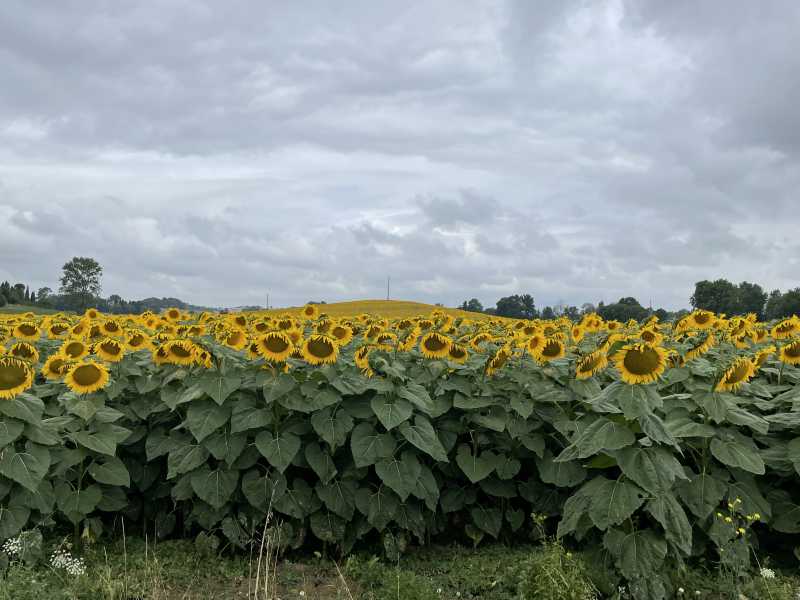 La fin de floraison du tournesol est envisagée an bout de la semaine prochaine, le reste on ne sait pas au vu des températures moyennes anormalement basses annoncées pour les 15 jours à venir.