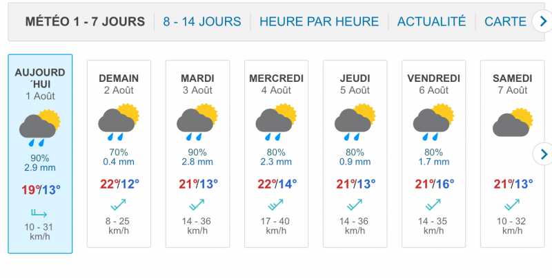 Ici, la pluie, c’est presque tous les jours depuis le printemps. On vient encore de se prendre cet après midi quelques orages avec des trombes d’eau. (de toute façon on est en alerte météo presque tous les jours en ce moment) Et encore s’il faisait “chaud” entre les orages, mais même pas!