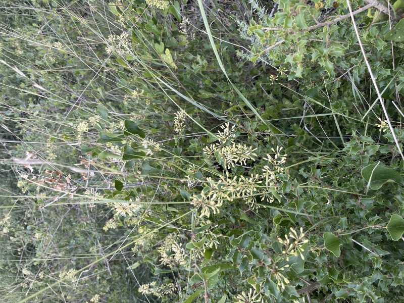Pas encore en fleurs la salsepareille ou ronce à cœur.Moi où je suis en garrigue c’est déjà bien ouvert.