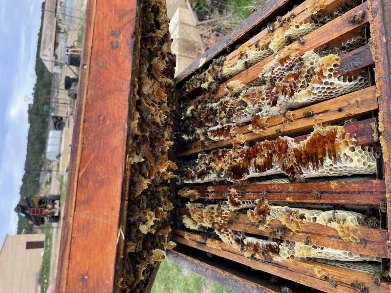 Surprise la ruche qui est chez moi, j’avais laissé la hausse, elles avaient mis un peu de miel , mais là c’est plein..T’as pas oublié de fermer un fût ?