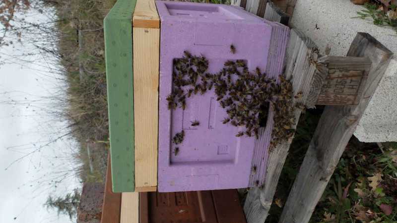 Je vois les différences entre les types d’abeilles, mes peaux de vaches locales sont encore bien lourdes comparées aux agneaux qui consomment dur…Pour l’instant, pas de pertes, on verra dans 3 à 4 semaines quand je pourrais ouvrir s’il y a des bourdonneuses mais c’est un hiver normal pour l’instant à part le douceur…