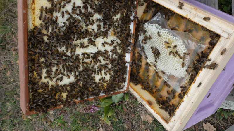 A force d’années d’observation, on arrive à voir et à comprendre les comportements d’une manière générale et aussi quelque exception, la nature étant tout sauf linéaire.Par rapport aux vieilles reines, il m’est arrivé qu’en fin d’année, elles fassent des supersedures . En 2021, j’en avais une ainsi , elle a fait juste un peu de miel sur le tournesol, du coup je l’ai laissée . Quand j’ai ouvert pour l’AO, elle s’est mise à vrombir, j’ai compris qu’elle n’avait plus de reine . Hier je l’ai ouverte et effectivement , elle commençait avoir un peu de couvain de mâle seulement . Comme il y avait encore3 à 4 cadres d’abeilles , je l’ai vidée, j’ai récupéré les abeilles et je les ai endormies pour les mettre sur une de mes + faibles afin d’aider le redémarrage
