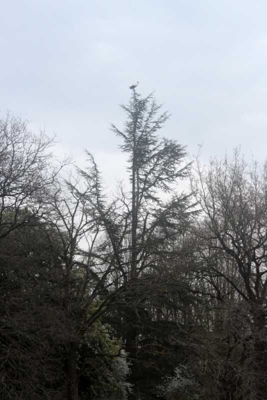 Il faut que ça passe et voir après. Et il n’y a pas que l’acacia, pensez à l’arrêt de sève pour le reste de la végétation… si ça caille fort , ce sera une saison pire que l’an dernier,Une cigogne qui s’est posée à coté de chez moi ce soir (tout en haut du sapin)