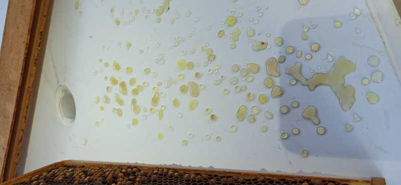 Les mini + commencent a avoir des aller / retour , les bourdons tournent autour en fin de journée . Sur mon rucher principal ou j’ai laissé toute les hausses de la première mielée elles commencent enfin à operculé , je vais contrôler au réfractomètre et préparer la mielerie .