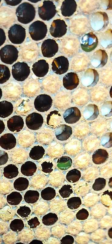 a ronce vient à peine de s’ouvrir. En greffant cet aprèm j’ai vu du nectar vert fluo dans les certaines cellule.