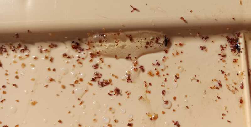 Peu d’abeilles au fond de la ruche mais comme pierro un rond d’abeilles mortes entre les cadres avec présence de la reine.