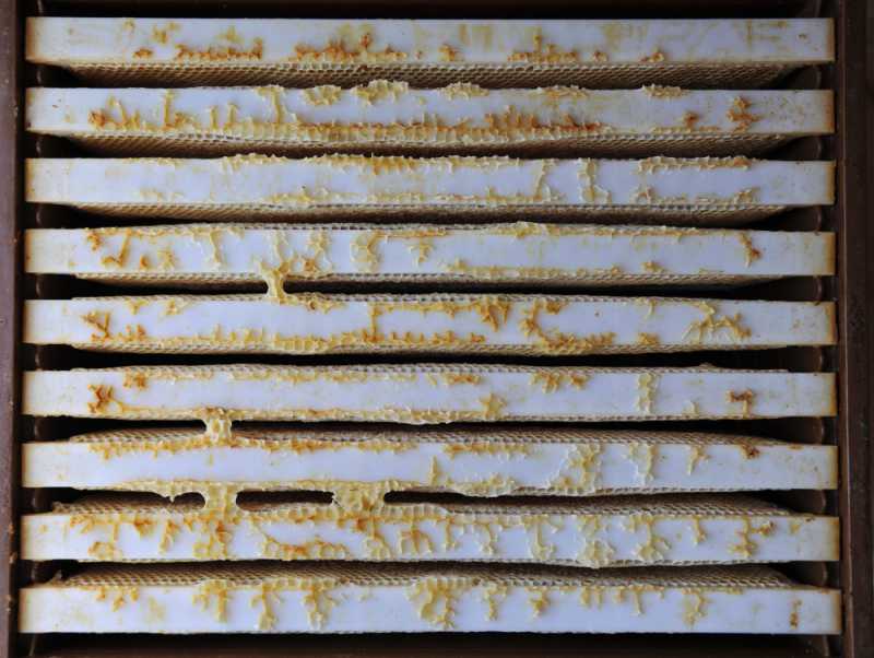 Je vous ai pas raconté suite à la grêle ma toiture de la mielerie est devenue une passoire , le lendemain matin après mon extraction de toutes les hausses , les filtres sur les maturateurs et les brèches entrain de s’égouttées , et l’extracteur vidé , un nuage d’abeilles , j’ai tout évacuer sous ma serre