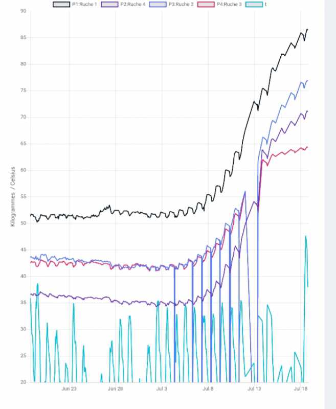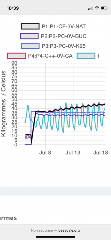 En 2015 avec le sapin j’avais fait 70 kg.il y a 3 années et 4 moisRang: ReineMessages: 1547Nb de ruches: 48Localisation : France215 ptsComme il n’est pas prévu d’orage significatif sur nos montagnes, on peut considérer la saison terminée.