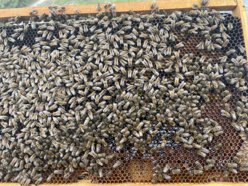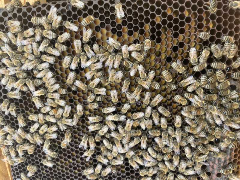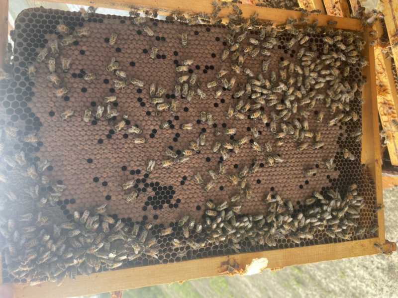 Le couvain, 2 cadres operculés et 2-3 cadres de ponteJolie !!!