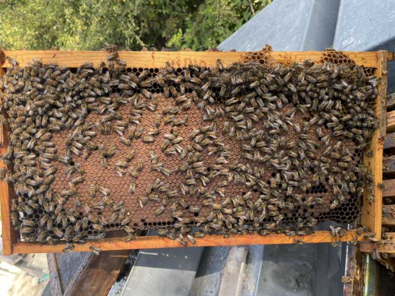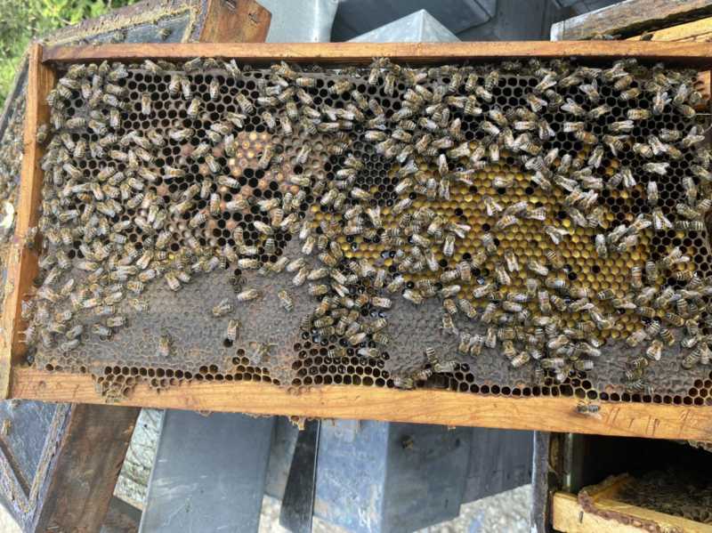 Visite du rucher de la Drôme sur lierre, ça commence à miellée et beaucoup de pollen dans les cadres et un couvain plutôt joli.