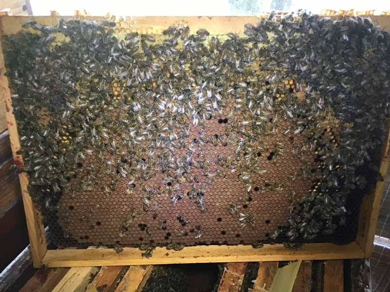 @+Ici elles sont a l’ombre sous les arbres , dans des cabanes et les plateaux aéré , avec hausse ou pas , elles font la barbe aussi , pourtant la température est modérée , je pense que en plus du manque de place sa fait partie du modèle des abeilles pendant une partie de la saison .