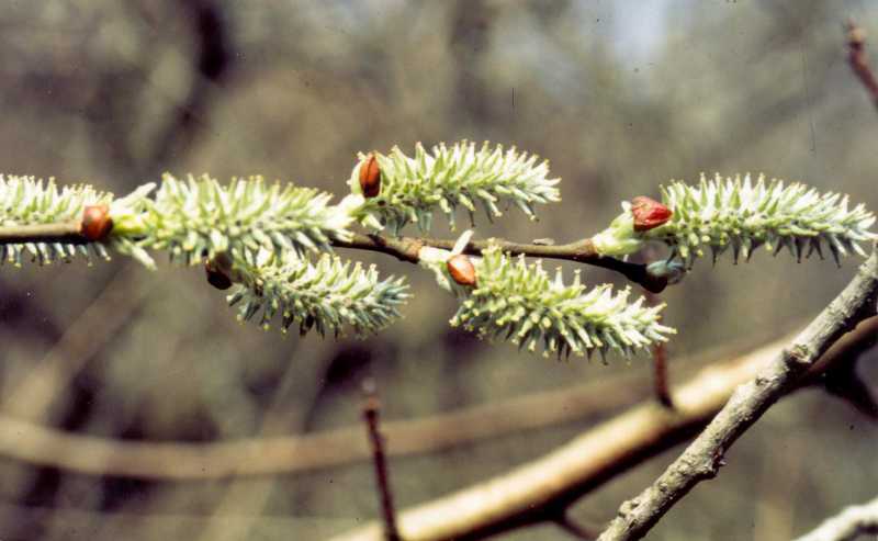 Ici, photo : chatons fleurs mâles de Saule marsault