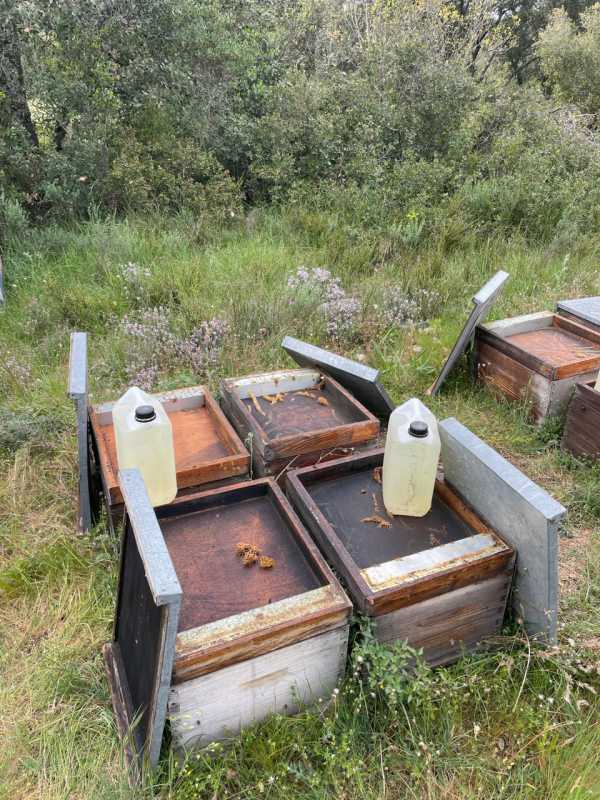 Aujourd’hui : depuis ce matin 6,4mm de pluie, la température descend on a eu 10°C à 9h30, et maintenant à 10h50 il fait 7,9°C. Encore une journée fichue.La miellée de garrigue c’est foutue, j’ai nourris les ruches, elles sont sèches , c’est blindé d’abeilles par contre. Je vais les bouger mais je sais pas où encore.