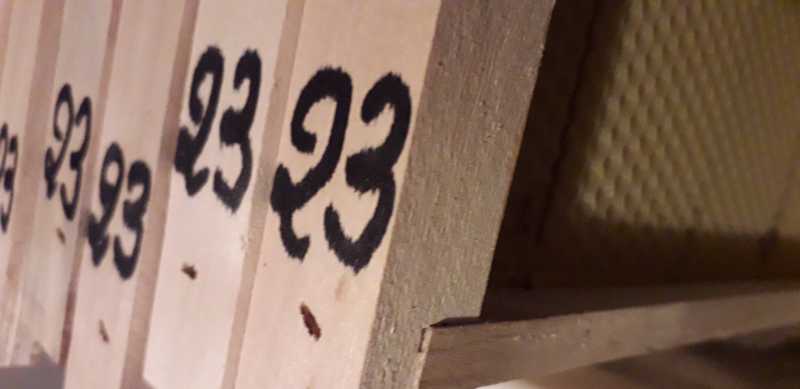 Ruches partitionnées 7à 9 cadres belles populations… j’en ai regardé une : 3 cadres de couvain operculé.