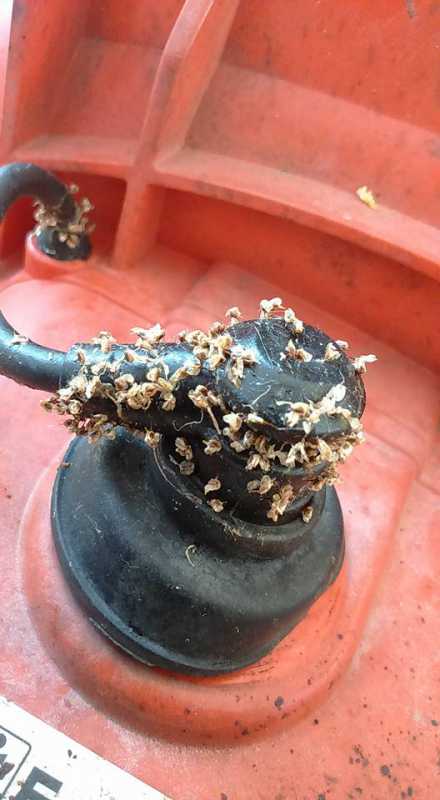 Comme préconisé par JS, il faut mettre une gaze pour ne pas aspirer les abeilles et surtout vider le carburateur pour l’hivernage.