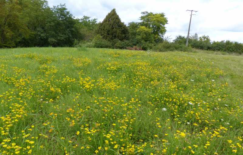 Ces ruches sont au bord de la Loire, et en ce moment sur de grandes étendues herbeuses fleurissent une grande quantité de scabieuses et de lotiers très appréciés des abeilles, elles rentrent encore du pollen, donc pour l’instant elles continuent d’augmenter leurs réserves.