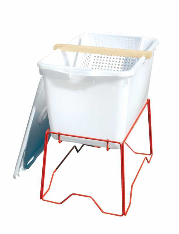 Comme Chouchie, j’ai pris des bacs gerbables, norme europe et alimentaire à BD, j’ai percé le bac du haut avec des trous, une traverse en bois avec une vis au milieu et j’en suis ravi! J’avais refait un autre ensemble avec d’autres bacs alimentaire d’un autre magasin et autant satisfait! Après égoutage je vide le bac du bas dans le maturateur. Par contre pas encore eu la chance de faire 300kg de miel d’un coup, ni pas d’un coup d’ailleurs! Mais ça va venir peut être! Je fais tout pour!