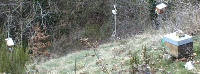Peut-être est-ce du au fait qu’il faut que ce soit à 2m de hauteur par rapport au ruches.Car à 20 m en contrebas dans un terrain pentu, c’est comme si elles étaient à niveau par rapport aux ruches, voire même plus bas.