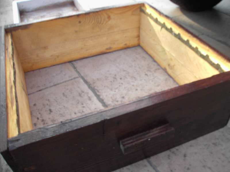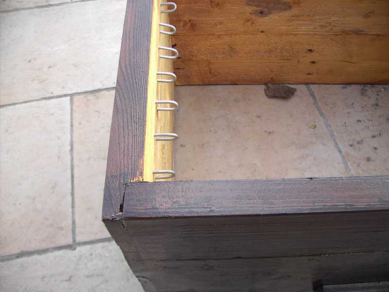 Le bois que je récupère doit faire au moins 25 mm d’épaisseur. Je le laisse sécher au moins 12 mois et j’élimine les bois qui vrillent.Je mets le bois à épaisseur 25 mm , ils font 9 à 11 cm de largeur, je les assemble par une rainure de 7 mm d’épaisseur et 16 mm de large, je colle et j’assemble les panneaux. 43cm sur 31 de hauteur et 47.5 sur 31 cm. Dans le panneau de facade j’ai fait une entaille de 25 mm sur 12.5 mm et 15 mm sur 12.5 mm sur le haut.