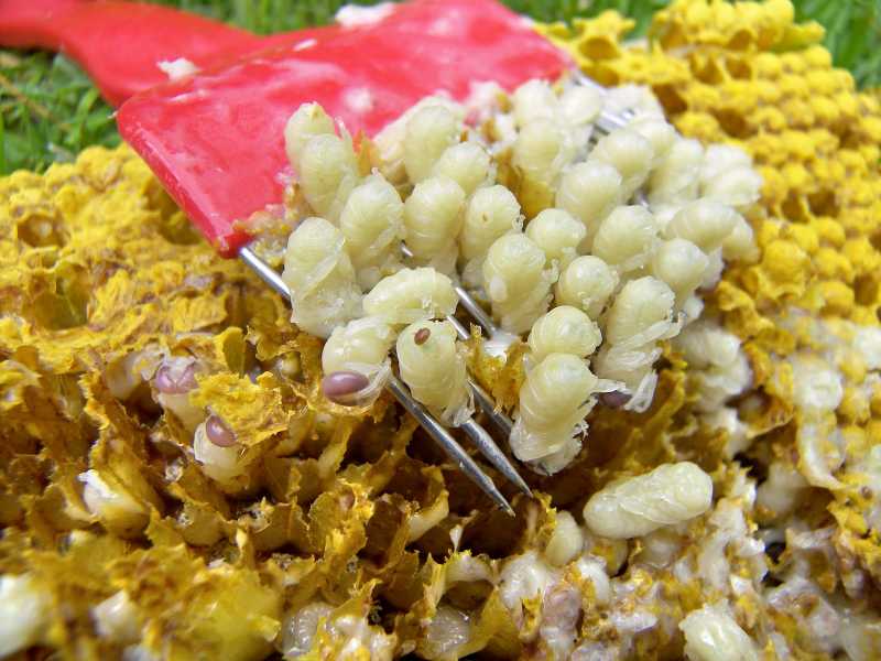 Maintenant, en sachant qu’un traitement n’est jamais efficace à 100% et que tu n’as pas vu de varroas tomber, pourquoi mettre en danger tes colonies en ouvrant par ces températures ? Tu pourras toujours placer des cadres à mâles à construire au printemps qui te serviront de piège à varroa. Une fois pondus et operculés, retire-les et dégage les larves à la fourchette. Tu auras alors une idée du taux d’infestation.