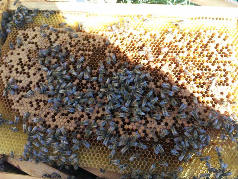 absence de miel au-dessus du couvain est le signe de disette ( faute grave de l’api)