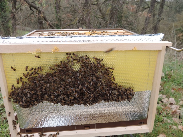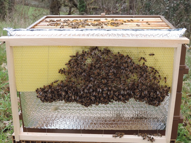 Peux-tu confirmer ?Oui, avec papier journal sur la partie découpée, sauf une colo en forme où j’ai posé direct. J’ai aussi mis un peu de fondant sur les têtes des baticadres pour les attirer. Cela devrait faire un effet cheminée. Ces cadres me serviront à amorcer mes naisseurs de reines (haussette 6c que je dois encore fabriquer d’ailleurs!). il y a 9 années et 7 moisRang: ButineuseMessages: 295Nb de ruches: 30Localisation : 73270 Villard-sur-Doron, Savoi1 ptQuestion bête : elles ne vont pas bouffer le polystyrène ? Je l’ai déjà expérimenté avec des partitions ! C’est du polystyrène extrudé delpron 9mm, pour le moment elles n’y ont pas touché sur les partitions que j’avais mis pour l’hiver. C’est l’expensé qu’elles depiottent rapidement. Là pour trois semaines ça ira ;).