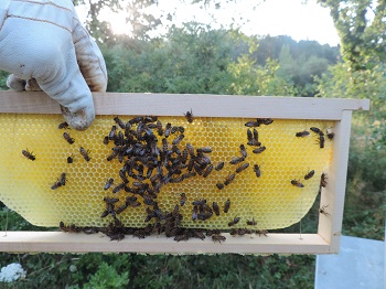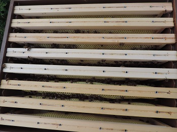 Finalement, sur les ruches en production, deux ont essaimées (reines de moins d’un an), j’ai donc éclaté en partie les colo. J’ai quand même fait bâtir pas mal de cadres (6 sur celles qui sont restées en production). J’ai récolté 20kg sur les deux restants en production.