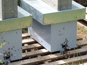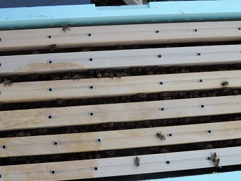 Pour le reste, ça a été assez compliqué, les éleveurs de reines ont eu des retards. J’ai donc fais des divisions en espérant recevoir les reines à un moment correct (CR de sauveté et d’essaimage). Perdu mes reines 2014 (grille à reines beiges d’entrée de ruche, elles les ont butées).