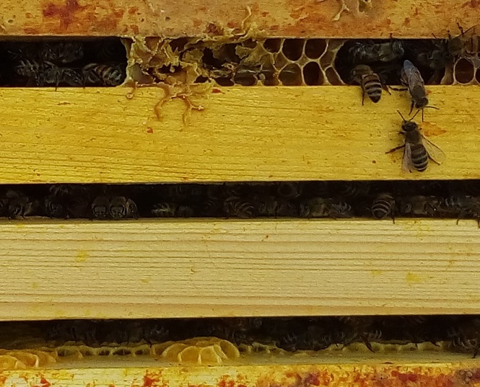 Ce n’est que mon deuxième hivernage, je n’ai pas assez d’expérience. Pour le moment j’ai l’impression que les colonies sont comme l’an dernier. J’essaye de trouver une photo!