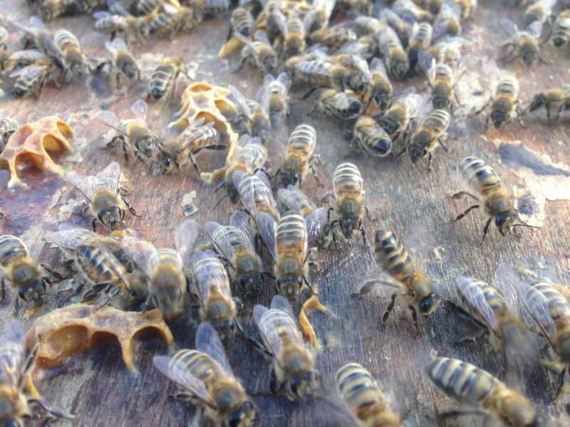 j’etais dans mon jardin en train de nettoyer un cadre. Le fait de bruler les bords, quelques zazas ont été attirées, du coup j’ai mis quelques goute de miel sur les alvéoles et je suis partie chercher l’appareil photo.
