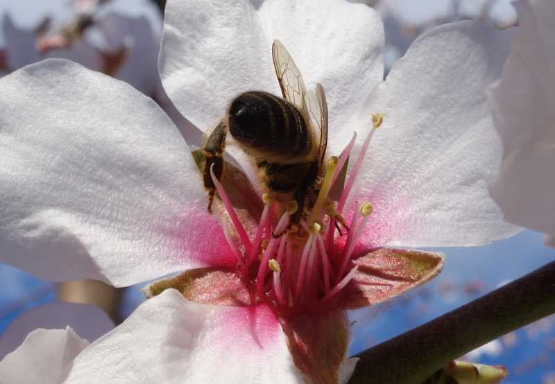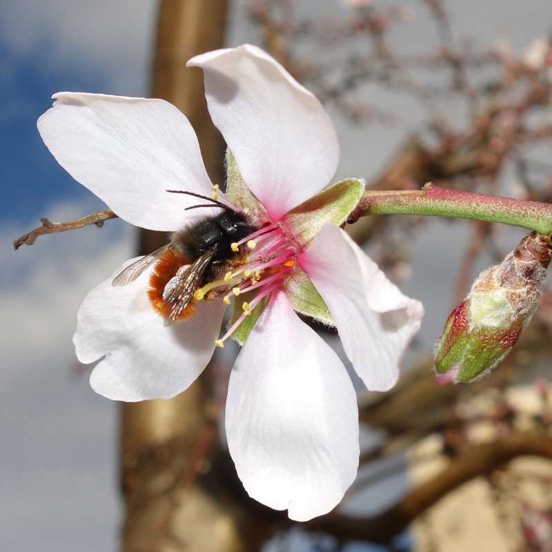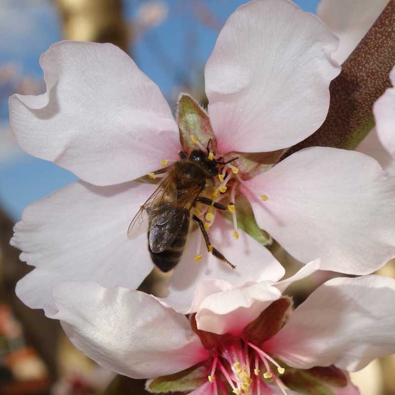 Très beau temps cet après midi, Zaza, Bourdon et autres hôtes sur l’amandier. Ça fait plaisir a voir