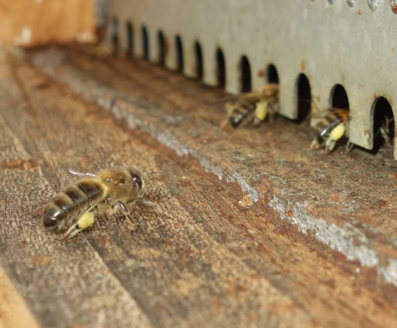Il me semble que c’est du pollen de fausse roquette, non?Ecoute… je n’en sais absolument rien, je cherche aux alentours mais prêt de la rivière entre garrigue, foret, vignes et terrains agricoles, c’est pas vraiment facile à dire. Une chose est sure c’est qu’elles sortent régulièrement et si arrêt de ponte il y a eu, elle à été très courte.