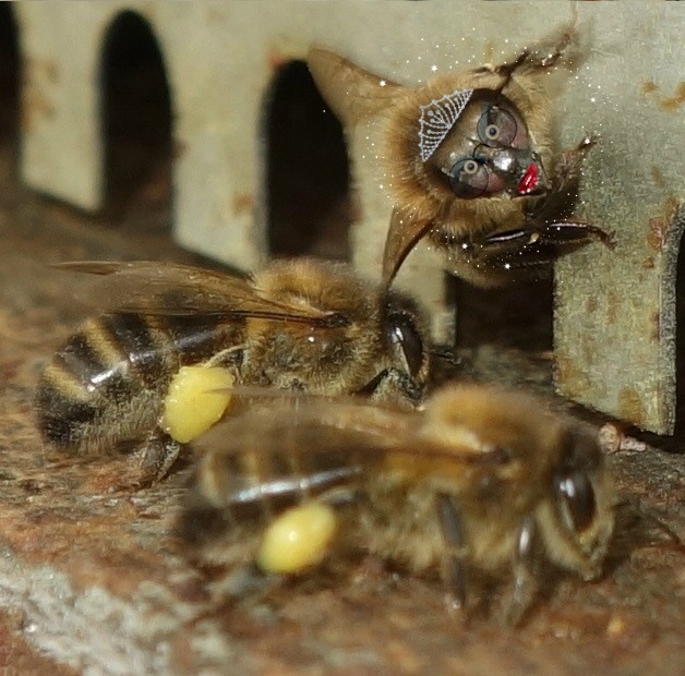 beaucoup de pollen pour festoyer le dernier jour de l’année, puis une reine qui se fait belle pour l’occasion.