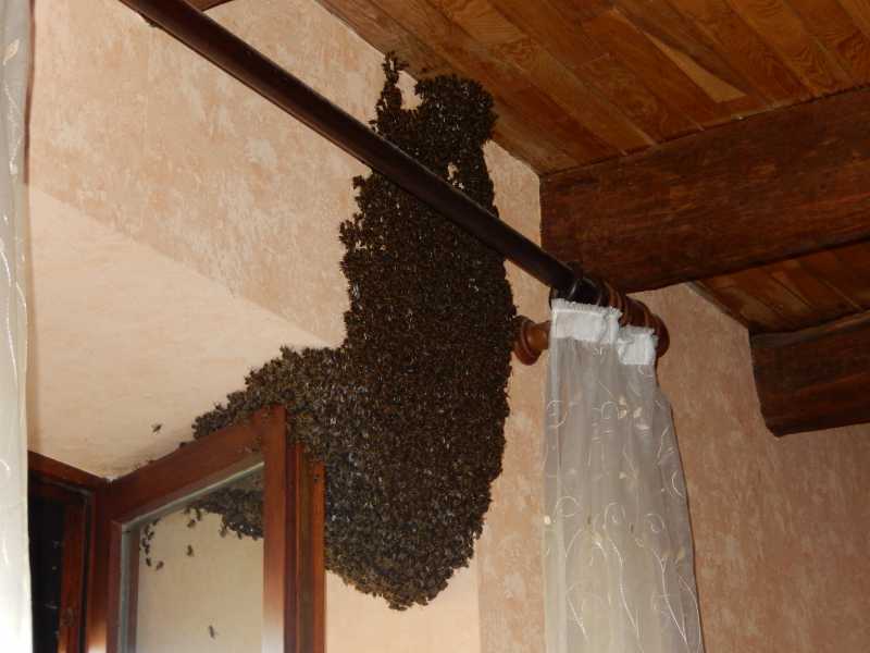 Il y a un essaim dans le mur…juste un peu plus haut que le plafond et quelques abeilles en sortent parfois à l’intérieur de la chambre…elles ont même déposé un peu de propolis au plafond…Est-ce cela qui les a attiré???