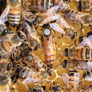 Reines fécondées Buckfast F1 « Frère Adam » 2026, marquée blanc 2026. Souche F0 de pédigrées Keld Brandstrup et Apinov[...]